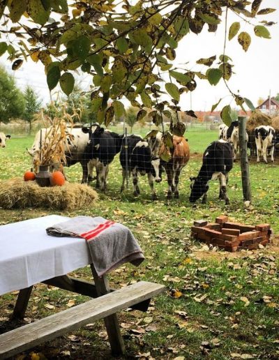 Les participants se rendent à la ferme en voiture et quittent les lieux quand ils le souhaitent, après le repas.