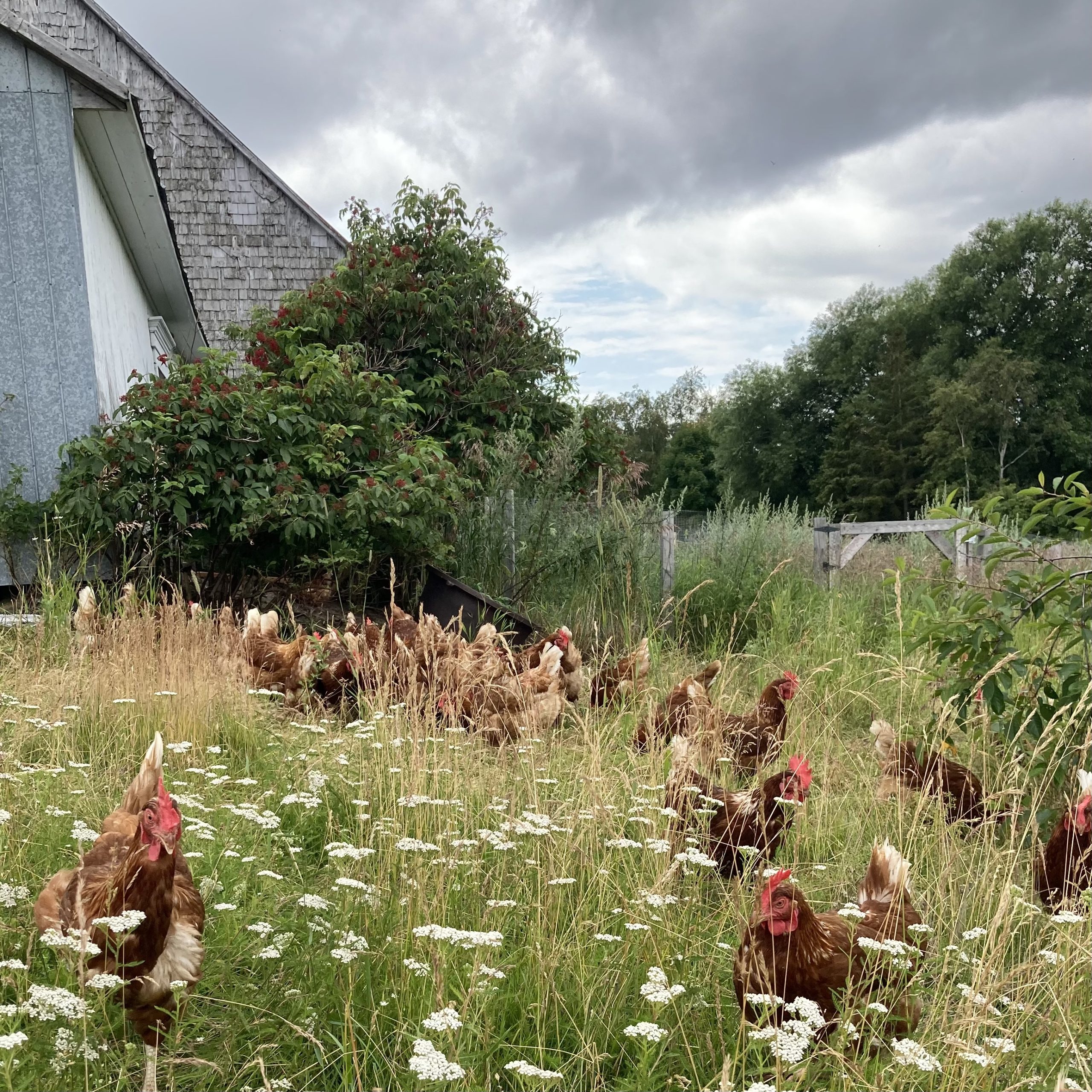 Roch le fermier est une microferme démarrée en 2021 sur un lopin de 6 acres. Inspirée par l’agroécologie et l’agroforesterie, les parcelles potagères et les pâturages des volailles fermières sont entourés de haies brises-vent nourricières. Un jeune verger diversifié grandit tranquillement : la vision est d’en faire un verger pâturé.