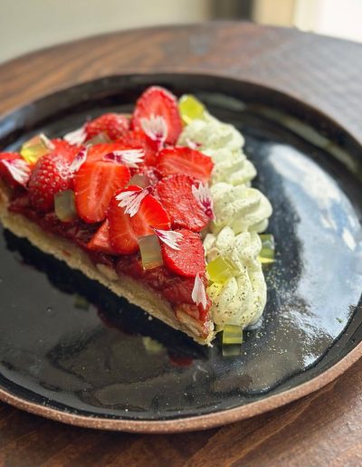 Ouvert tout récemment au printemps 2024, Claire Jacques est un restaurant du quartier Villeray à Montréal. Le restaurant se veut une invitation à ralentir et à prendre une pause, à se rassembler et à échanger. Le menu, qui va de la collation, à l’apéro, au repas qui s’étire, est composé de petits plats à partager, évolue au gré des saisons selon les aliments locaux disponibles. Nous aimons beaucoup jouer entre le salé et le sucré, les fruits dans les plats et les légumes dans les desserts.