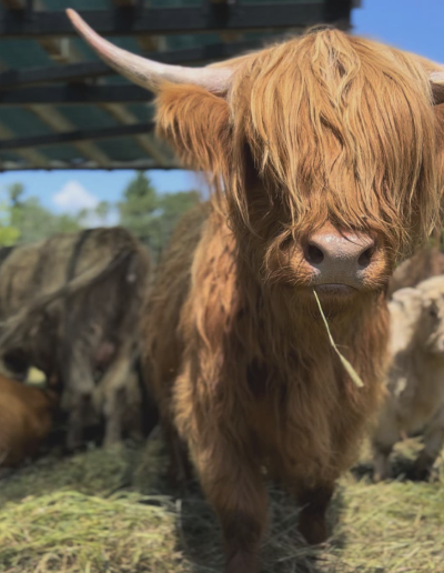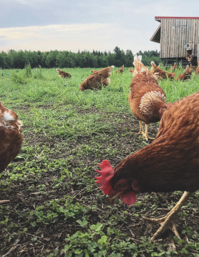 Chez Ferme La, Jean-Philippe et Maude élèvent des animaux en plein air, sans hormones ni antibios (bœuf Highland, des porc Bershire, poulets et poules pondeuse). À l’origine, ils ont voulu simplement subvenir à leurs besoins en étant autonomes et indépendants des grosses chaînes commerciales. Puis ils sont rapidement tombés en amour avec ce mode de vie qui rejoint grandement leurs valeurs. Ils croient que l’Homme d’aujourd’hui qui ingère des milliers de produits transformés s’est “alimentairement” un peu perdu. Ils sont donc très fiers et heureux de pouvoir offrir à leurs proches et aux gens de la région l’opportunité d’acheter un produit local, naturel, et élevé avec beaucoup d’amour.