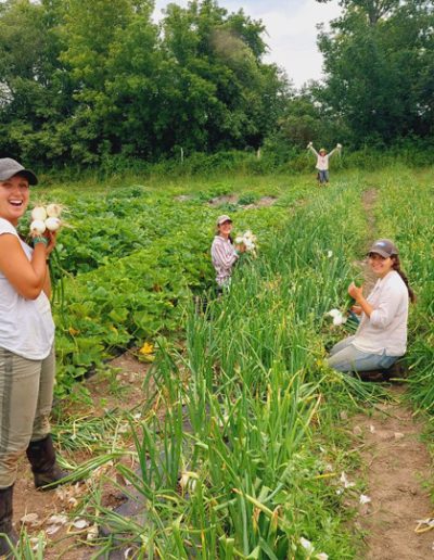 Après quelques années de bénévolat et de déménagements de terre, trois amis décident de gagner leur vie en agriculture entraînent la décision d’acheter une terre à Ormstown, en novembre 2008. C’est à l’hiver 2009 que Guillaume, Poya et Olivier créent la Coopérative de travail les Jardins de la Résistance. Il y a beaucoup à faire sur une terre quasiment abandonnée : rénover la grange, construire une serre et une salle de semis, préparer les champs, un espace de lavage des légumes et un espace réfrigéré. En 2010, la coop obtient la certification biologique d’Écocert Canada. 17 ans plus tard la Coop compte aujourd’hui 4 membres et quelques employé·es saisonniers·ères. La vente des légumes et quelques produits transformés comme les sauces piquantes et le kimchi suit principalement le modèle d’agriculture soutenue par la communauté (ASC). Ce modèle de vente directe permet à la Coop de nourrir plus que 400 familles de juin à novembre à différents points de chute à Montréal et la rive sud. Ils distribuent aussi désormais 200 paniers d’hiver de décembre à la fin avril.
