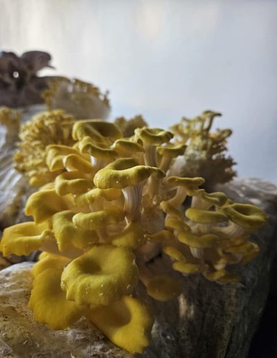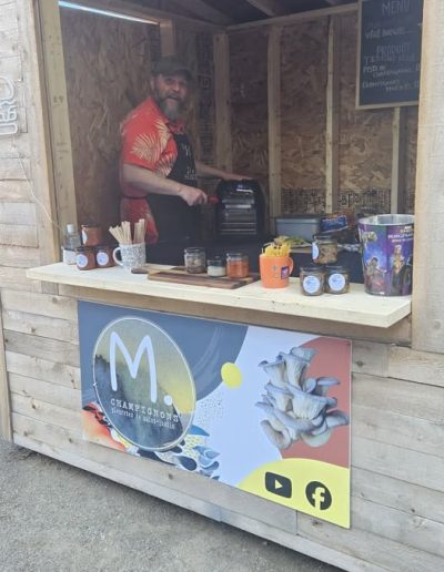 Monsieur Champignons est né en 2017 suite à une sécheresse dans nos bois.  Nous nous sommes demandés si cela serait difficile à produire à l'intérieur. Notre aventure débute avec les 2 premières années de recherches, développement et formations.  Suite à ça, nous avons développé nos techniques de production. Aujourd'hui, nous produisons 6 à 9 variétés de pleurotes à l'année, de l’hydne hérisson, de la pholiote adipeuse et du shiitake. Nous avons développé des produits transformés, tel que le pesto de pleurotes et tomates séchées, pleurotes marinés, terrine de champignons, galettes burger d’hydne hérisson, et sauce à pizza l'hamajoun végé.