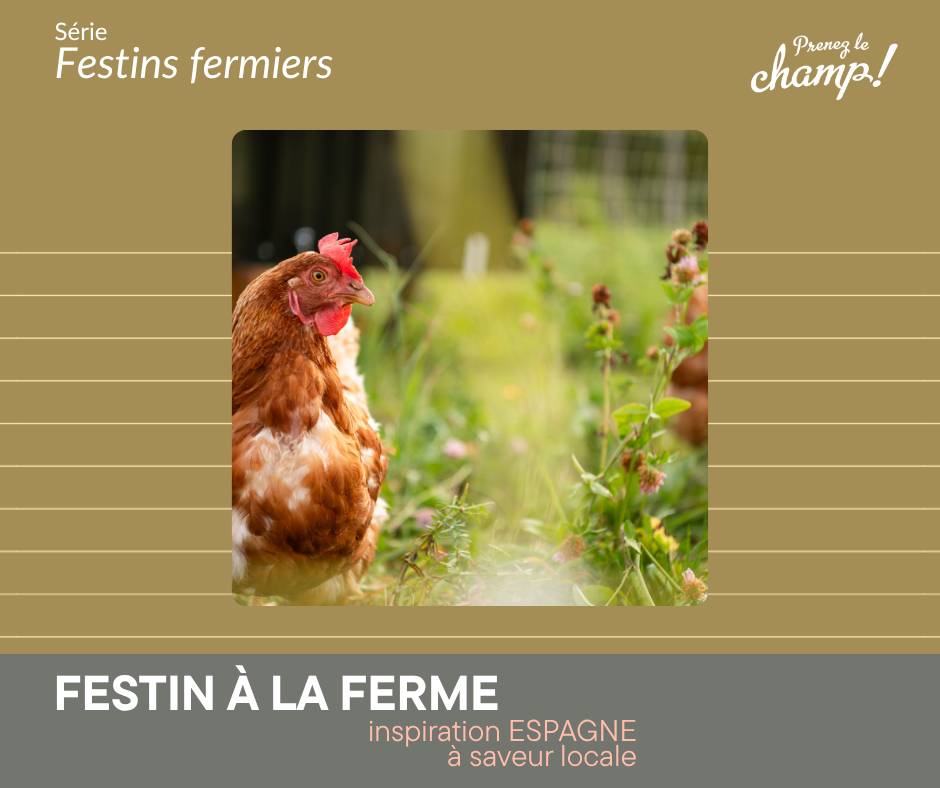 Visite d'une microferme (pondeuses sous verger). Menu tapas espagnols à saveur locale.