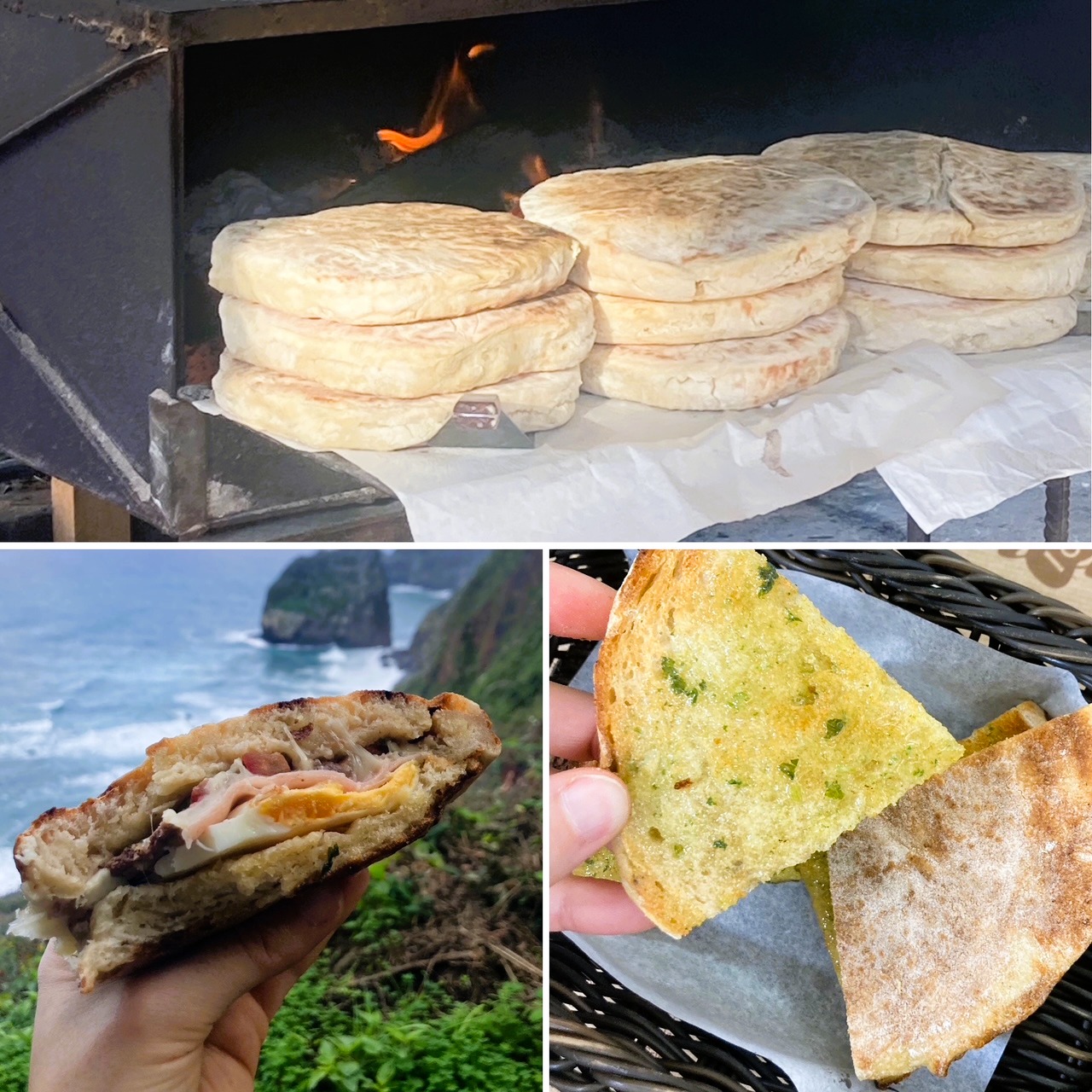 Outre les restaurant et ce type de kiosques sur la rue, à Madère, on trouve le bolo do caco dans les boulangeries et dans les épicerie. Lors de mon séjour, je dirais que j’en ai mangé au moins deux fois par jour, puisque j’en achetais pour mes toast matinales aux tartinades locales. Je les utilisais aussi pour préparer les sandwichs que j’apportais en randonnée les fois que je ne mangeais pas un prego d’une cantine du coin. Enfin, impossible de s’assoir au restaurant dans le panier de bolo au beurre à l’ail!