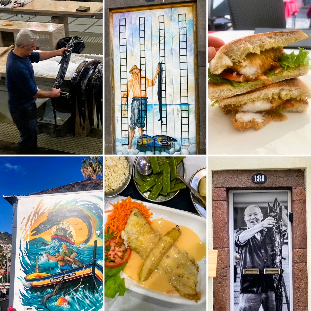 L’espada (le sabre noir) est un poisson typique de Madère à l’apparence inquiétante (on pourrait le comparer à une sorte d’anguille noire des profondeurs pouvant mesurer un mètre, avec des yeux géants et une bouche pleine de dents pointues). En vous baladant à Funchal et à Camara de Lobos, vous le verrez apparaître sur différentes œuvres urbaines. Au Mercado dos lavradores, on peut le voir entier en vrai dans la section des poissonniers.