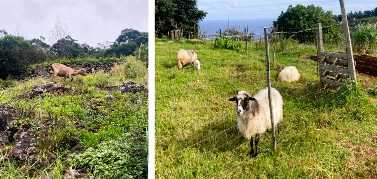 Les levadas traversent aussi des petits pâturages. Tantôt quelques chèvres. Plusieurs une ou deux vaches. Encore plus loin, ce sont les moutons. Dans certains espaces, on peut observer une poignée de poules.