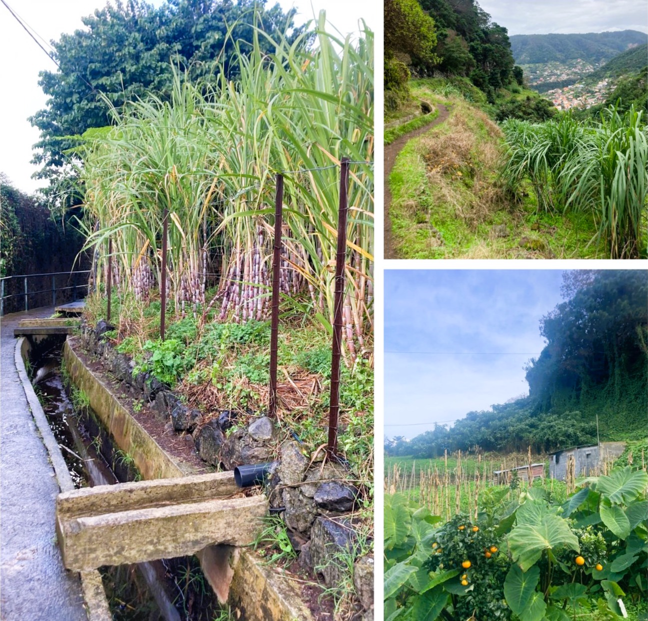 Des parcelles de canne à sucre, justement, on en croise aussi le long de certaines levadas. Madère a une importante histoire sucrière, de laquelle vient l’aguardente (alcool de canne à sucre local qui est la base des ponchas) et le mel de canna (mélasse de canne à sucre locale) qui est en vedette dans certains desserts très typiques comme le bolo de mel et les broas de mel.