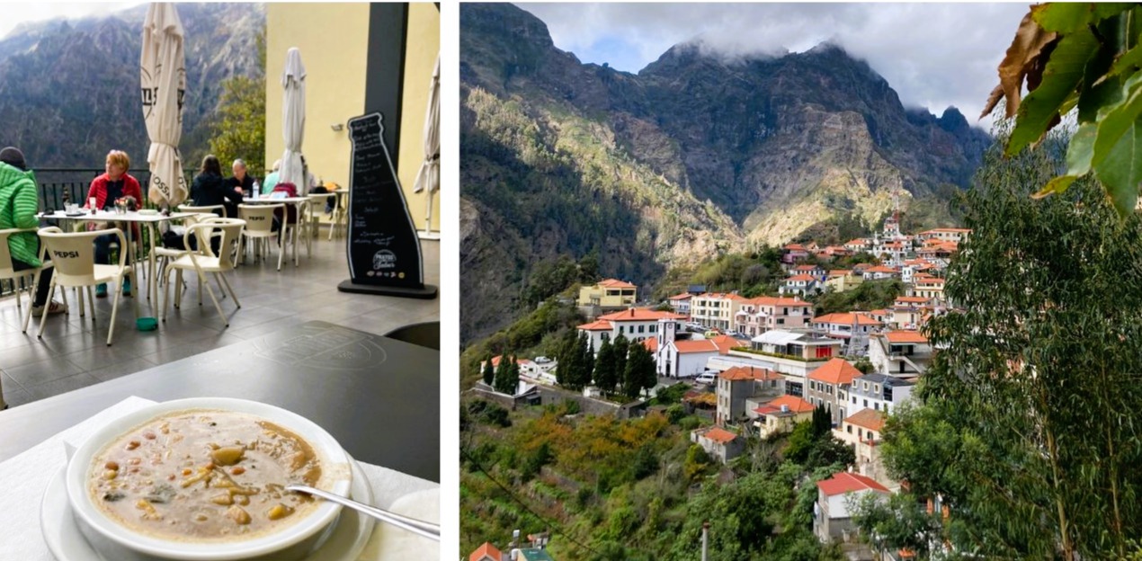 Curral das Freiras et ses châtaignes. Ce petit village encastré par d’imposantes montagnes qui le surplombent, a une spécialité : la châtaigne. Dans les boisés environnant, on peut observer les châtaigniers avant de savourer des spécialités de chataîgnes dans un des quelques restaurants de la rue principale du village. Parmi ceux-là, outre les châtaignes grillées, la soupe de chataignes (avec pommes de terre et haricots) est particulièrement typique. On trouve aussi des gâteaux et pâtisseries à la chataigne. Pour 1 euro, on peut visiter un minuscule musée de la chataigne, qui se visite en 10 minutes mais, tant qu’à être là, pourquoi pas!